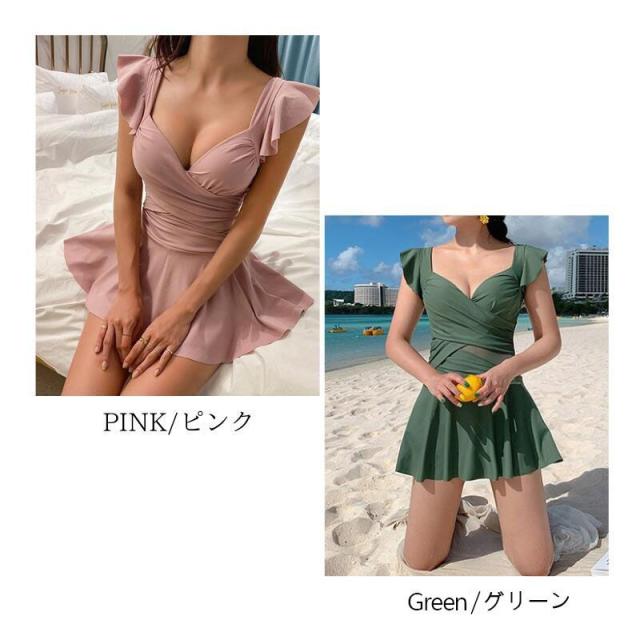 水着 体型カバー ワンピース 水着 レディース 体型カバー レディース水着 オールインワン 体型カバー水着 ママ水着 みずぎ ミズギ フリル 大きいサイズ スカート ぽっちゃり 20代 30代 40代 50代 60代 ピンク グリーン 可愛い ワンピ お洒落