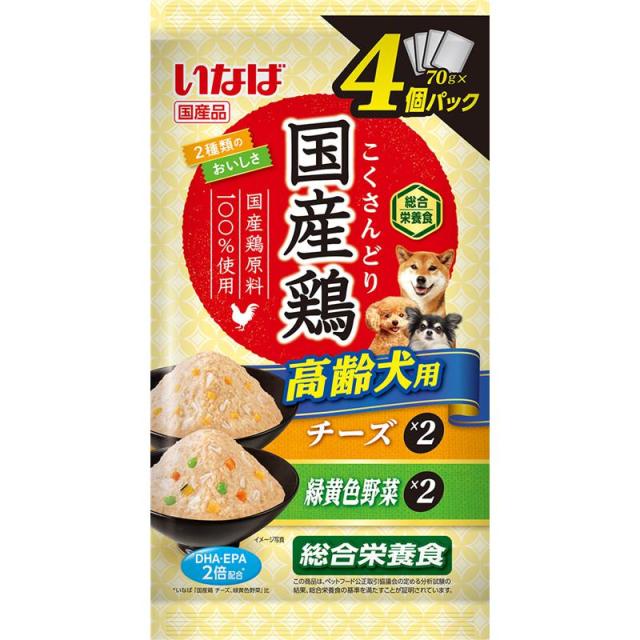 【セット販売】いなば 国産鶏 高齢犬用 チーズ・緑黄色野菜バラエティ 70g×4袋 (×8セット)