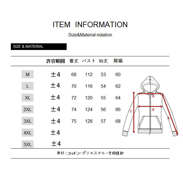 ※基本的に、XL・LL・2Lのサイズはすべて同じサイズです。