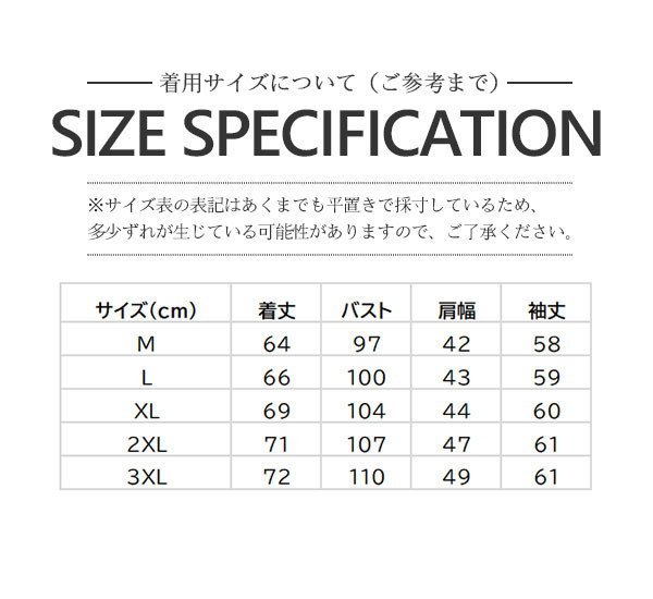 ※基本的に、XL・LL・2Lのサイズはすべて同じサイズです。