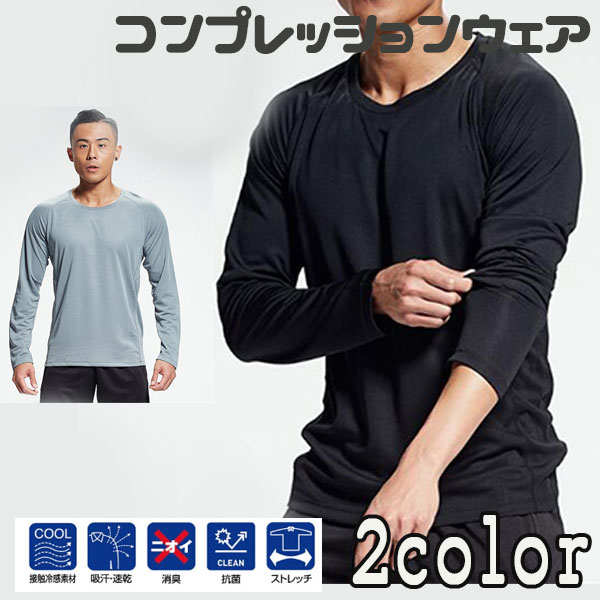 インナーシャツ メンズ 長袖Tシャツ コンプレッションウエア スポーツ UVカット トップス アンダーウェア 接触冷感 消臭 抗菌 トレーニング