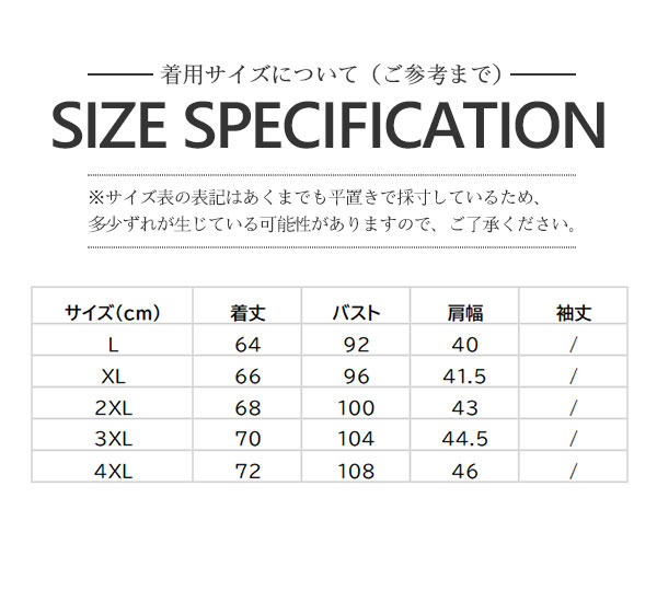 ※基本的に、XL・LL・2Lのサイズはすべて同じサイズです。