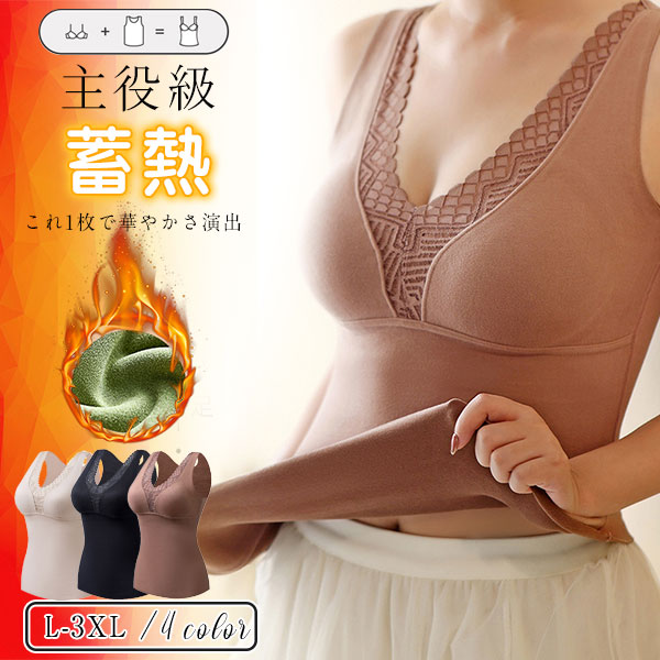 ブラトップ キャミソール カップ付き レディース おしゃれ レース 秋 冬 あったか 発熱 保温 暖かい 寒さ対策 タンクトップ 婦人 下着