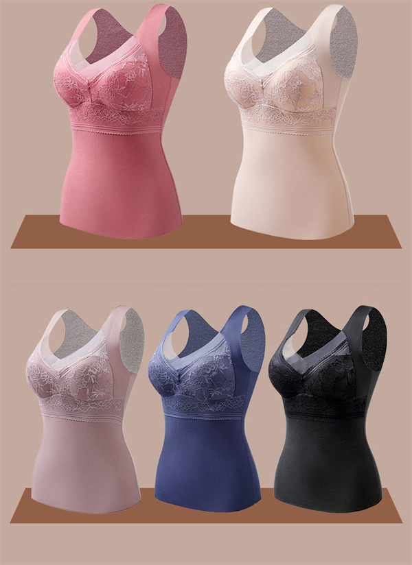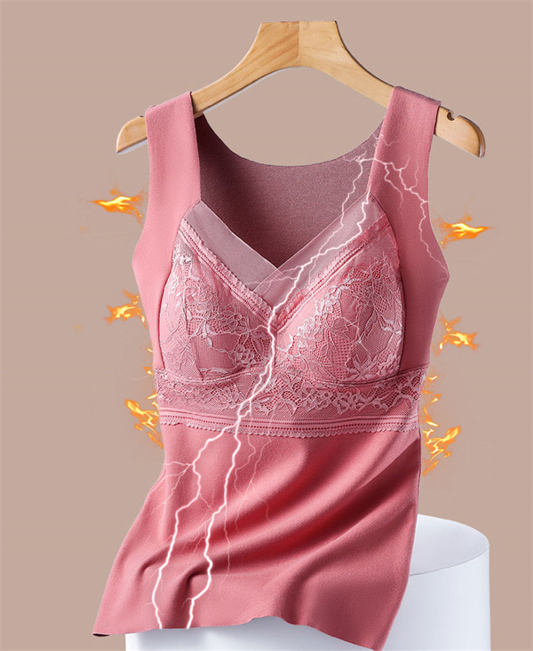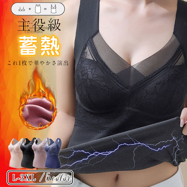 キャミソール 暖かい あったか インナー 裏起毛 タンクトップ 保温 レース Vネック カップ付 防寒 冬 ナイトブラ 下着 肌着 レディース