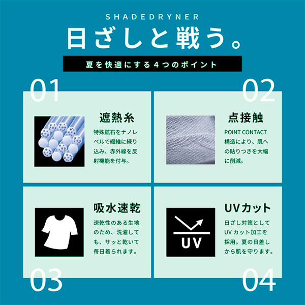 ●吸水速乾性に優れており、乾燥が早く汗が肌に貼り付きにくい。
