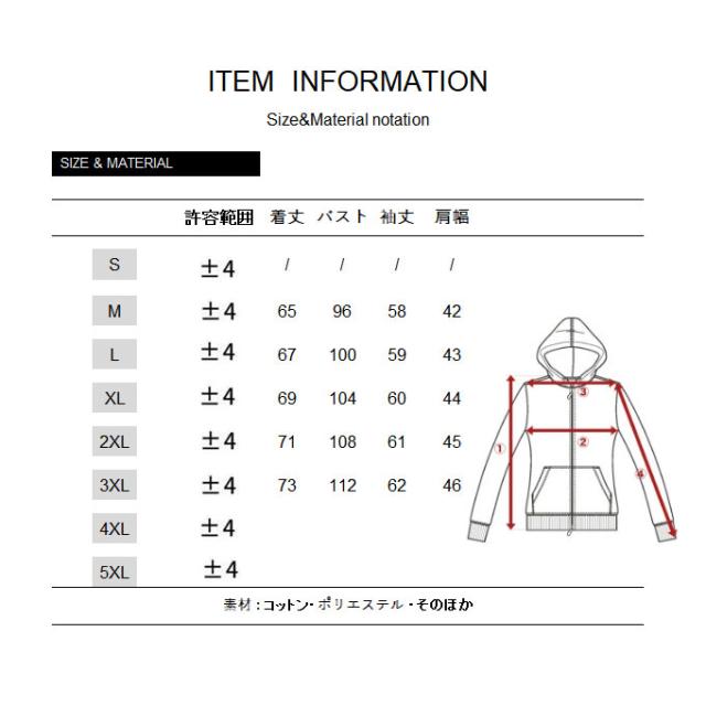 ※基本的に、XL・LL・2Lのサイズはすべて同じサイズです。