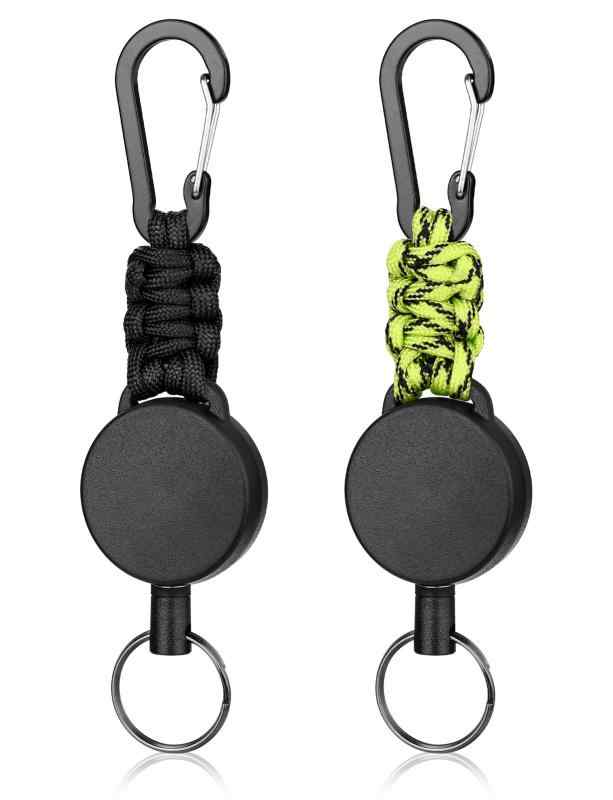 [Mellbree] リールキーホルダー カラビナ付き 2個セット 伸びるキーホルダー キーリール 軽量 頑丈 最長60CM 紛失防止 (ブラック+蛍光グリーン)