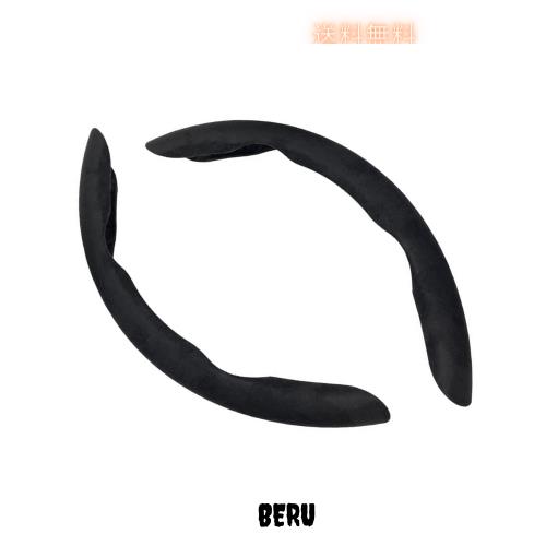 ハンドルカバー 車用 ステアリングカバー ハンドル ハンド 保護カバー カーボンファイバー スエード調生地 超薄型 滑り防止 円型とD型ハンドル オールシーズン対応 取付簡単 (ブラック)