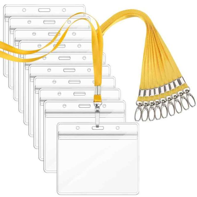[Segarty] 【idカードホルダー】 ネームホルダー 名札 吊り下げ名札 社員証 透明色名札ケース カードホルダー 首掛け 両面用 ネックストラップ カード 通学通勤 社員証 名刺 展示会 イベント用 パスケースpvc製 防水機能 (黄色 10枚入 横型)