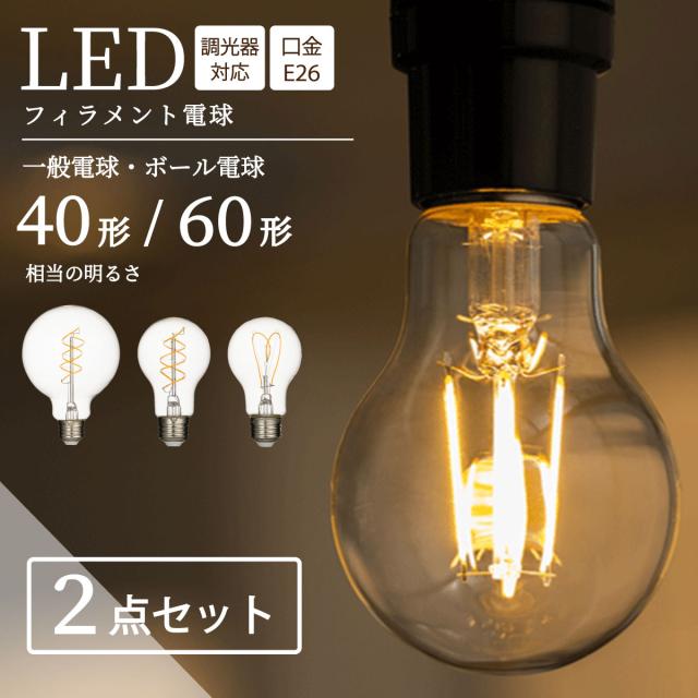 【一般電球 スパイラル 40形 2個セット】led電球 一般電球 スパイラル 40W形相当 E26 調光器対応 フィラメント エジソン フィラメント型 レトロ ヴィンテージ LED電球