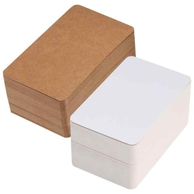 無地カード 名刺サイズ カード 無地 情報カード用紙 メッセージカード 落書き用紙 単語カード 言葉カード ブランクカード 手書き 紙カード 200枚入り(ホワイト×100, 茶×100)