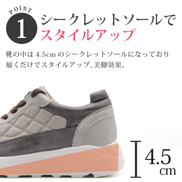 4.5cmのシークレットヒールでスタイルアップ!脚長効果で美脚に見えます。