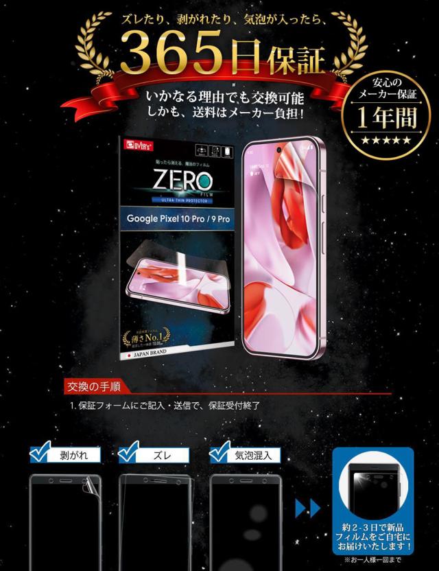 【365日完全保証】 Google Pixel 9 Pro / 10 Pro フィルム 湾曲まで覆える 4D 全面保護 保護フィルム フィルム 貼ったら消える魔法のフィルム 気泡ゼロ 2枚セット 極薄0.08mm 究極のさらさら感 衝撃吸収 OVER`s オーバーズ TP01