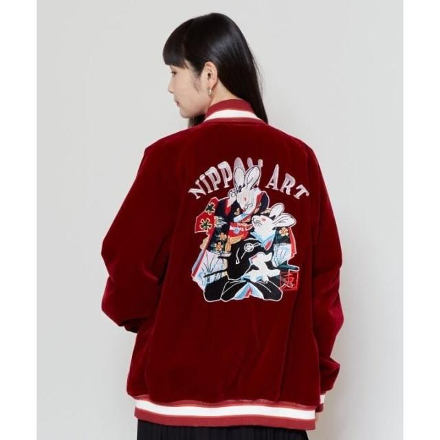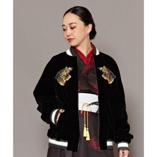 着るNIPPON ART。浮世絵が大胆に刺しゅうされたスーベニアジャケット。浮世絵から飛び出てきたような、大胆な虎や猫が刺しゅうされたインパクトのあるデザイン。M/Lサイズ展開・ダブルジップ仕様なので、ユニセはもちろん幅広い着こなしを楽しめます。ワンピースやデニム、和洋様々に組み合わせで楽しめる新しい和装カジュアルスタイルです。
