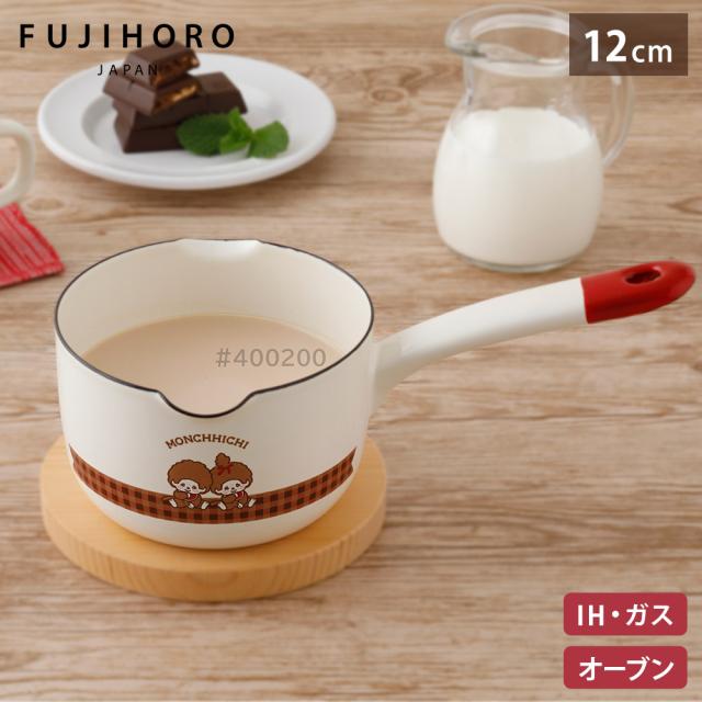 モンチッチ チェック ミルクパン ホーロー 12cm 800ml ガス火 IH対応 富士ホーロー MNC-12M 【 ホーロー鍋 琺瑯鍋 片手鍋 小鍋 ほうろう 琺瑯 調理器具 離乳食 直火 キャラクター グッズ 】