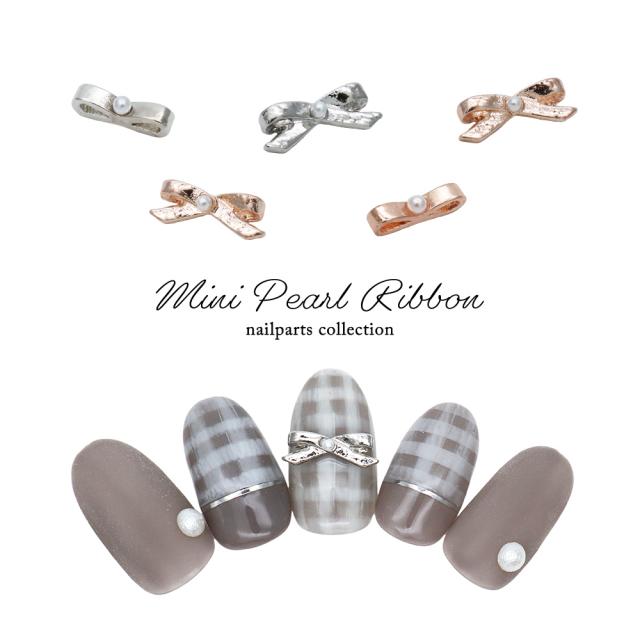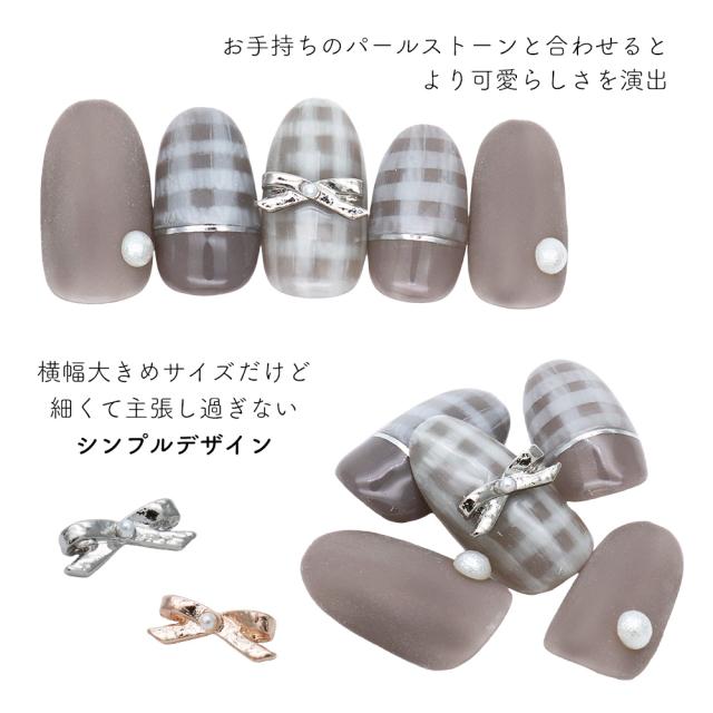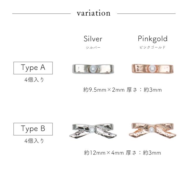 ネイルパーツ ミニパールリボンパーツ [シルバー/ピンクゴールド] 全4種 4個入り