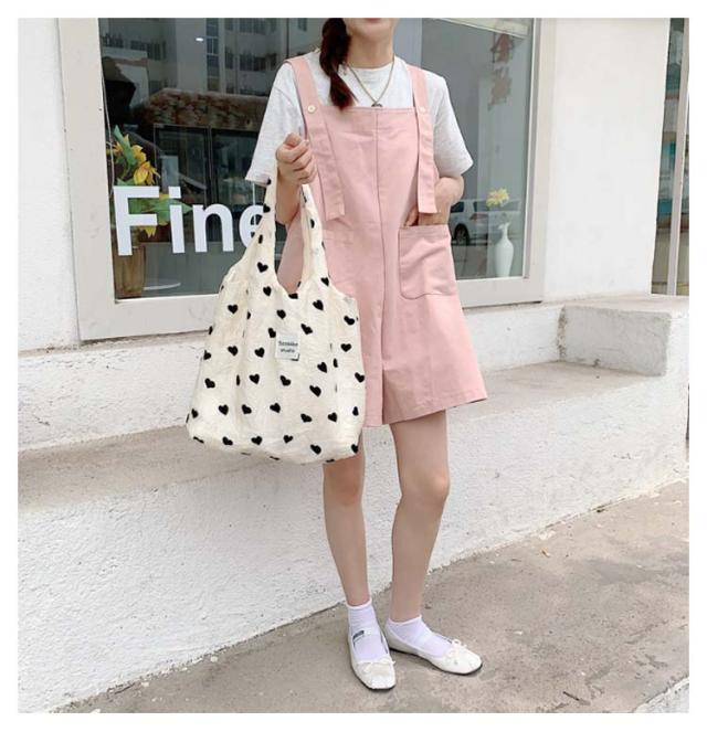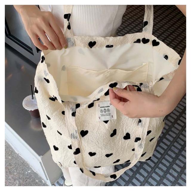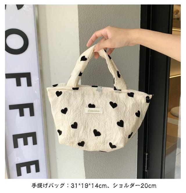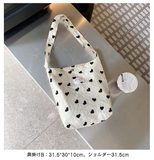 ハート柄バッグ 選べる5タイプ 大容量 トートバッグ 舟型 バッグ ポーチ お買い物 エコバッグ 化粧ポーチ ハート柄 サブバッグ 軽量 折りたたみバッグ たためる シンプル 可愛い 韓国 おしゃれ マチ モノトーン 鞄 トート ショルダーバッグ 肩掛け