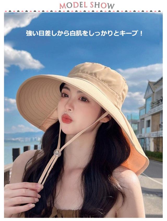 UVカット 日よけ帽子 レディース つば広 ハット 防水 撥水 小顔効果 あご紐つき ポニーテール穴付き UPF50+ ネックガード 首まで守る 夏 遮光 紫外線対策 折りたたみ サンバイザー 自転車 バイク 農作業 ガーデニング 帽子 熱中症対策 首保護 アウトドア ぼうし