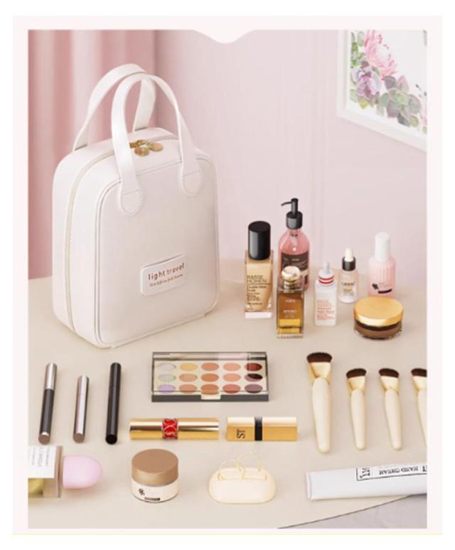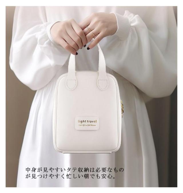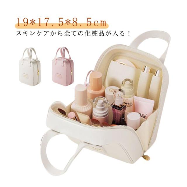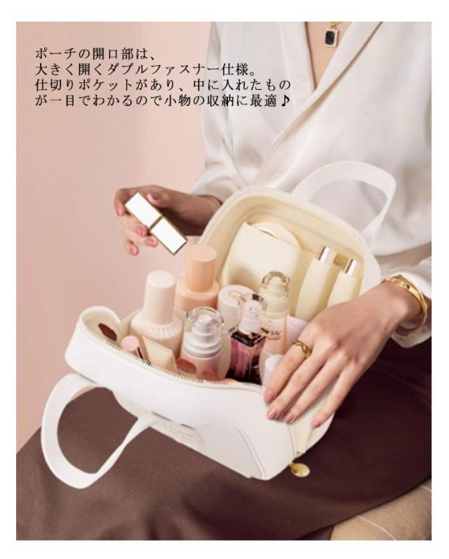 | スキンケアから全ての化粧品が入る!旅行や出張に便利なコスメポーチが登場♪ 中身が見やすいタテ収納は必要なものが見つけやすく忙しい朝でも安心。 充分なマチがあり、しっかりした素材で作られているから、化粧品などを立てたまま収納可能。 ポーチの開口部は、大きく開くダブルファスナー仕様。仕切りポケットがあり、中に入れたものが一目でわかるので小物の収納に最適♪ ポーチ上部には持ち手付き。お家の中でも外出中も、メイク用品を手軽に持ち運べる♪ 旅行・出張やお泊りはもちろん、ジムや職場のロッカーなどどの置きポーチとしても便利です。 | |