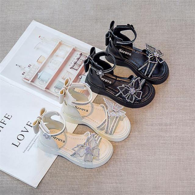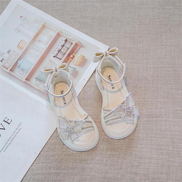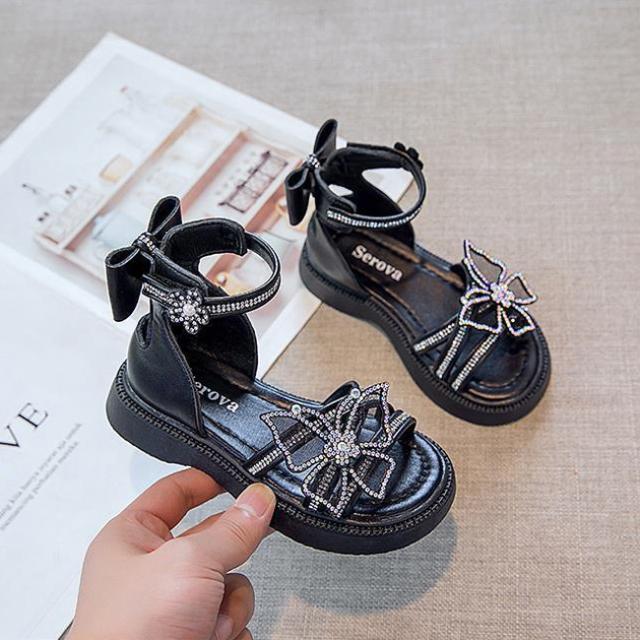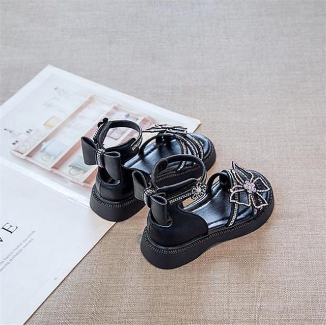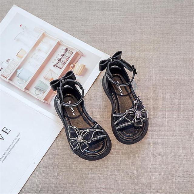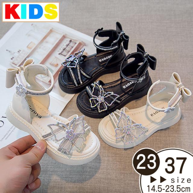 オシャレ サンダル キッズ 子供 サンダル 女の子 キラキラ キッズサンダル 子ども 子供サンダル こども ペタンコ マジックテープ 軽量 履きやすい ベビーサンダル 女の子 歩きやすい 小学生 ジュニア 子供靴 リボン付き ガールサンダル サボサンダル ブラック ホワイト