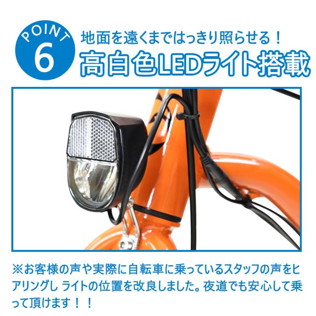高輝度LEDライト搭載しており、暗闇や夜道でも見えるように安心、安全の視認性を実現します。