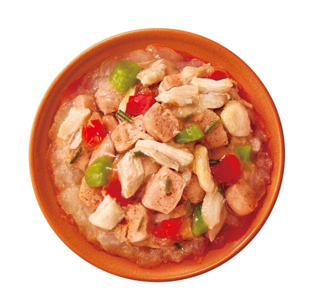 平飼いで育った鶏の良質なささみに、厳選したビーフとパプリカ・いんげんを加え、愛情込めて料理しました。着色料・香料不使用の無添加設計。