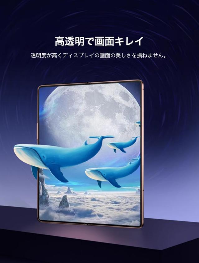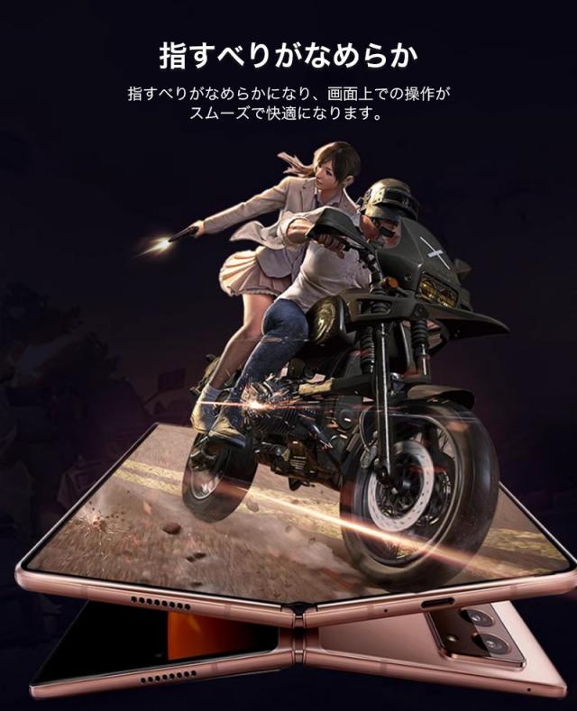 曲げに強い新素材「HYDROGEL」を採用。ガラスのように美しい透明感と、抜群の耐衝撃性をもった傷リペア機能付きGalaxy Z Fold用フィルムです。