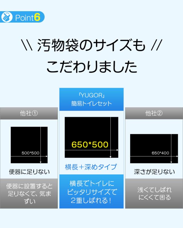 650*500mm、厚さ0.03mmの汚物袋は、横長でトイレにぴったりサイズで二重しばれます。