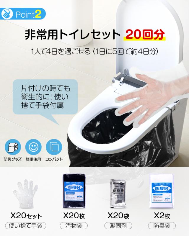 1箱(20回分) 簡易トイレ 非常用トイレセット 防災用品 防災グッズ 防災セット 非常用簡易トイレ 防臭袋 アウトドア 介護用 防災 携帯トイレ 台風 災害時