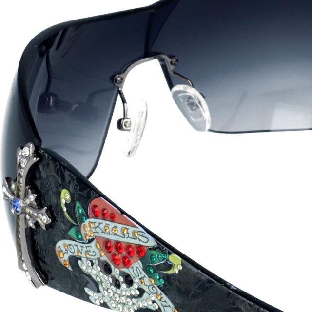 【訳あり】エドハーディー サングラス Ed Hardy CROSS 186サイズ スクエア型 メンズ レディース