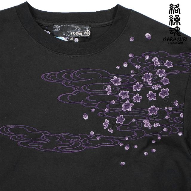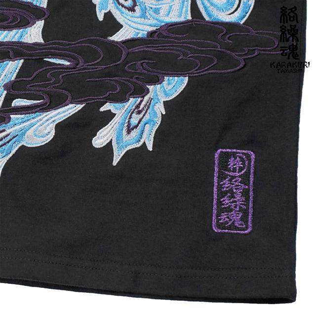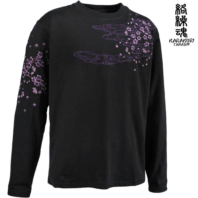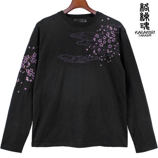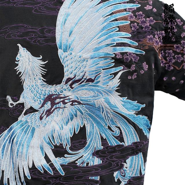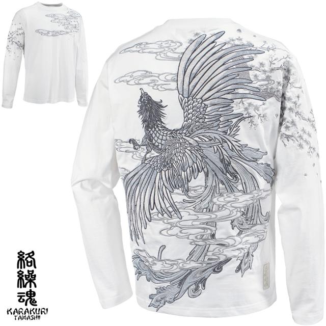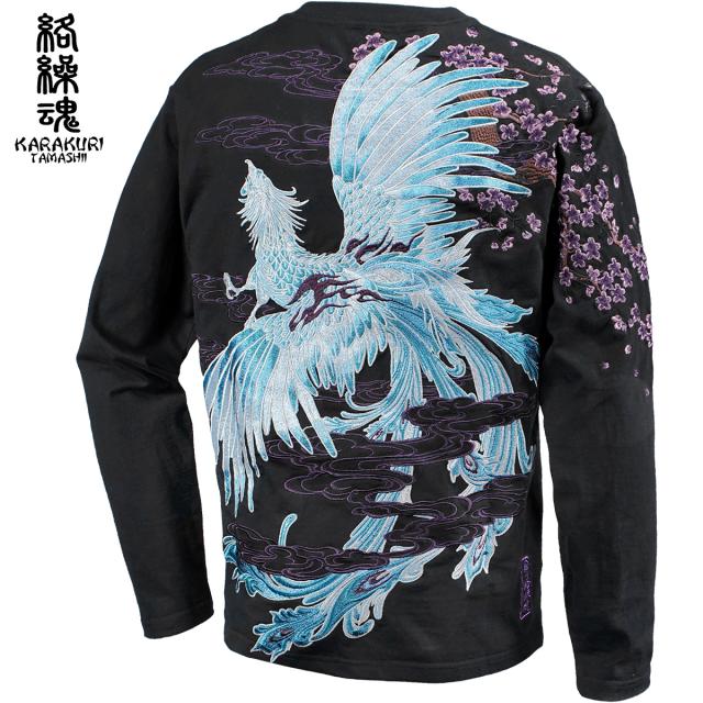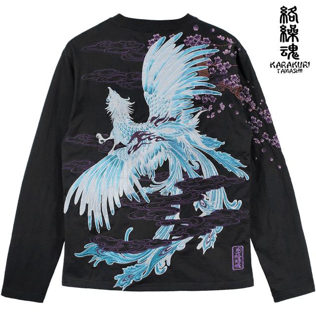 からくり魂 絡繰魂 粋 Tシャツ 長袖 クルーネック 鳳凰 和柄 刺繍 メンズ ロンT mens(ブラック黒) 243092
