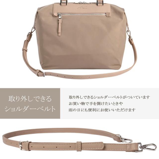 | ちょっとそこまで、ちょっと通勤。 必要な荷物をざっと入れて、身軽に通勤したい方に人気の「Pikin トートバッグ」がアップデートして生まれ変わりました!「ルノ ナイロントート」は、軽くて便利な通勤用のざっくりお手提げバッグです。カジュアルでも、きれいめコーデで持ってもいい具合にこなれてくれる、シンプルなデザインでお作りしています。ひとつ持っておけば、通勤だけでなく休日のお買い物やレジャー、お稽古ごと、授業参観などのちょっとしたオケージョンなどにも使えてしまう、とっても使い勝手の良いアイテムです。 革や合皮より軽く、綿生地より汚れにくいナイロン生地を採用。見かけによらず、内装のポケットも充実しています。取り外しできるショルダーベルトもついているので、お買い物で手を開けたいときや、雨の日にも便利にお使いいただけます。 【A4 JUST サイズのおすすめポイント】 A4サイズの書類をいただくことがあるシーンでは、他に書類の入るサイズのサブバッグを持つ必要がなくなるため、こちらのサイズがおすすめ。1泊程度のご旅行にも使えるサイズで、オフシーンにも重宝します。 【サイズ】 クリアホルダーに入れたA4サイズの用紙がギリギリ入るサイズ感。容量は15L。マチ幅がありナイロン製で柔らかいので、薄手の羽織りものや、お稽古用の着替えなどを入れても◎。専用スリーブはついていませんが、本体に13.3インチPCを入れることが可能です。※参照PCサイズ:W310×H220×D25[mm] 【機能】 簡単なのにきれいに整頓できて使い勝手も良い、ストレス知らずな収納を目指しました。 ★ 360°全方位ポケット 内装にはぐるっと一周どの面にもポケットがついているので、ごちゃごちゃしがちなトートバッグの中の荷物をしっかり整理できます。オープンポケット×4、ファスナーポケット×1、サイドポケット×2 ★ Napping pl.×1 スマートフォンなど頻繁に出し入れする小物を入れておける収納スペース。裏生地には柔らかいスエード素材を使用。 ★ Me Strap 鍵やパスケースなどの小物をフックで繋げておけるキーストラップ。バッグの中のDカンに取り付けてお使いいただけます。 ★ 外ポケット すぐ使いたい小物を入れられる、ファスナー付きの外ポケットを配置。 ★ ショルダーベルト付き 取り外しのできるショルダーベルトが付属。手持ちでも、肩掛けでも、ななめ掛けでも。スタイリングや荷物に合わせて持ち方をチェンジ! 【素材】 光沢感のあるナイロンツイル素材を使用。きれいめなのに軽く、扱いやすい素材です。 【カラー】 お仕事スタイルに合わせやすいニュアンスカラーでのおつくりです。シックなお洋服、華やかなお洋服にも合わせやすいお色にこだわりました。合わせやすさ抜群のブラック、お洋服のトーンを選ばない肌なじみの良いグレージュ、抜け感の出せる軽やかなアイボリー。 |