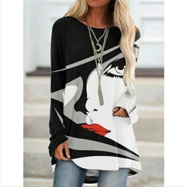 カジュアル DANCE衣装 ダンサー・ストリート系 原宿系 個性派ファッション!インパクトありの派手柄デザイン 長袖トップス Tシャツ