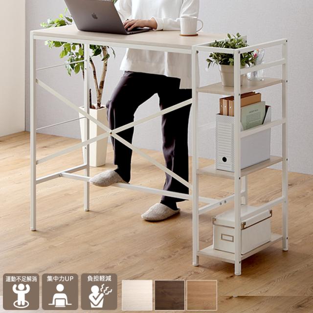 スタンディングデスク ハイデスク 作業台 ホワイトオーク 全3色 集中力UP フットレスト 足掛け 収納ラック PCデスク