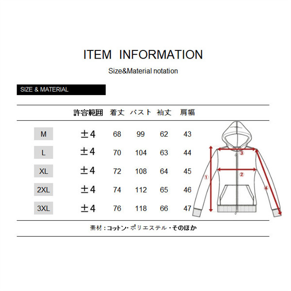 ※基本的に、XL・LL・2Lのサイズはすべて同じサイズです。
