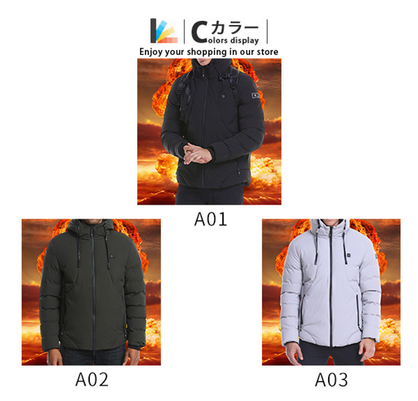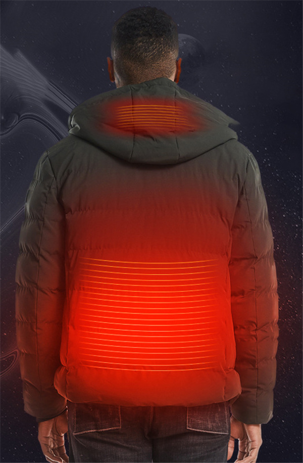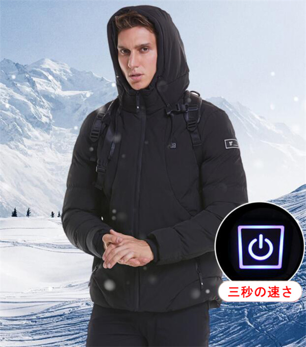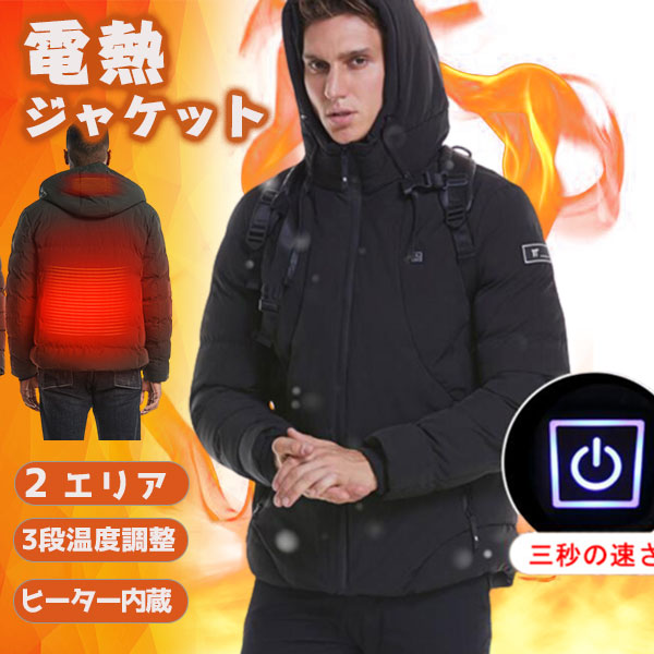 電熱ジャケット 男女兼用 ヒーターベスト 発熱服 ヒートジャケット 2エリア発熱 アウター 3段温度調整 防寒 中綿 USB式 加熱服 フード付き