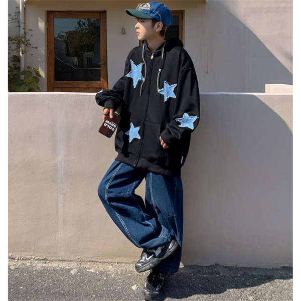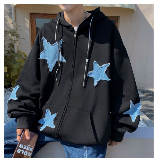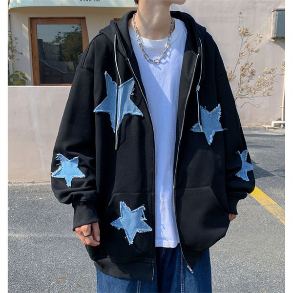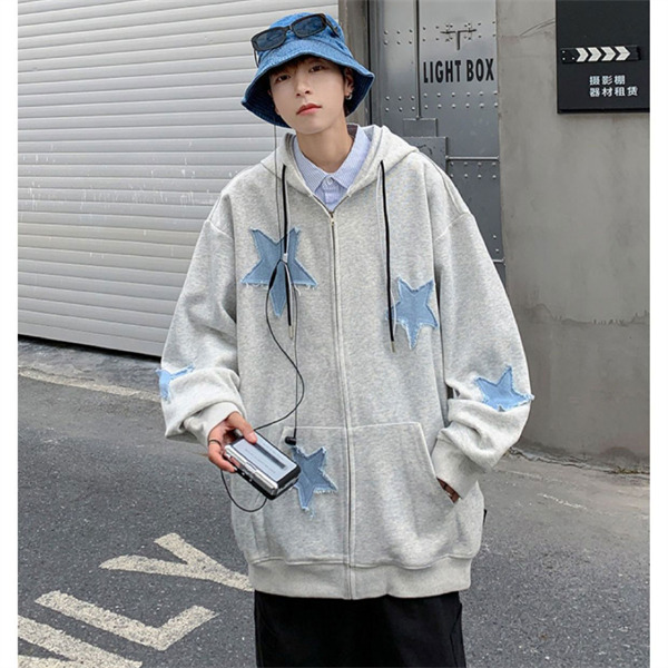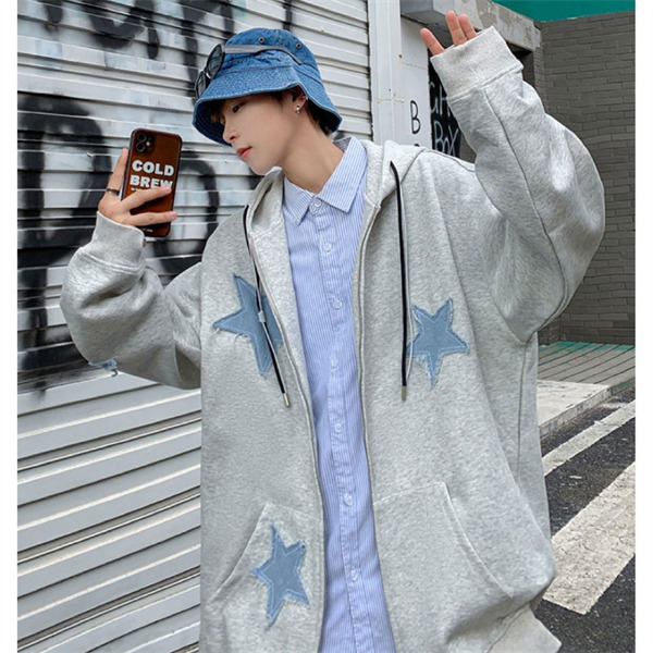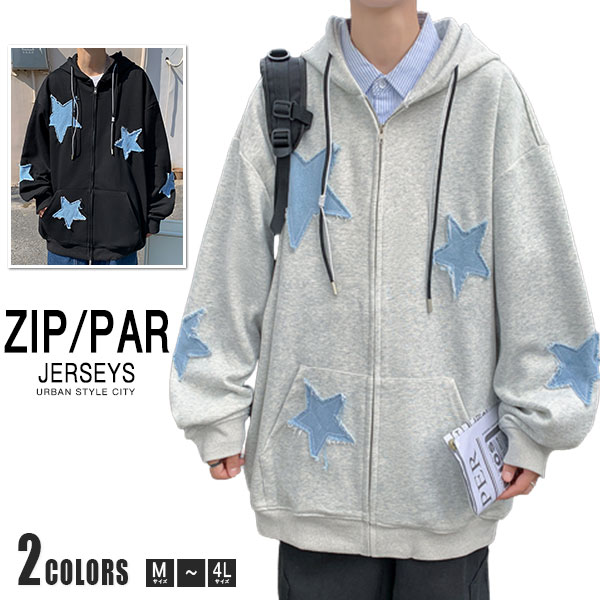パーカー メンズ ライトアウター 長袖 トップス フード ジップアップ スウェット ゆったり 男性 かっこいい 五芒星 カジュアル スポーツ