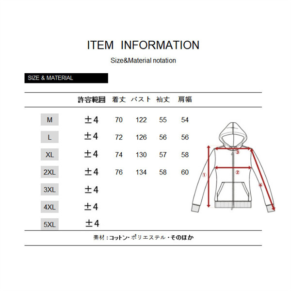 ※基本的に、XL・LL・2Lのサイズはすべて同じサイズです。
