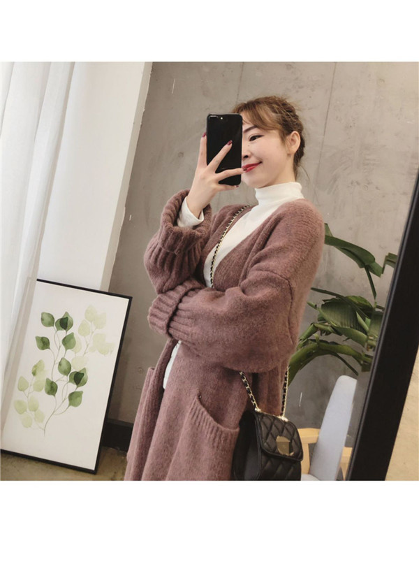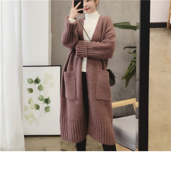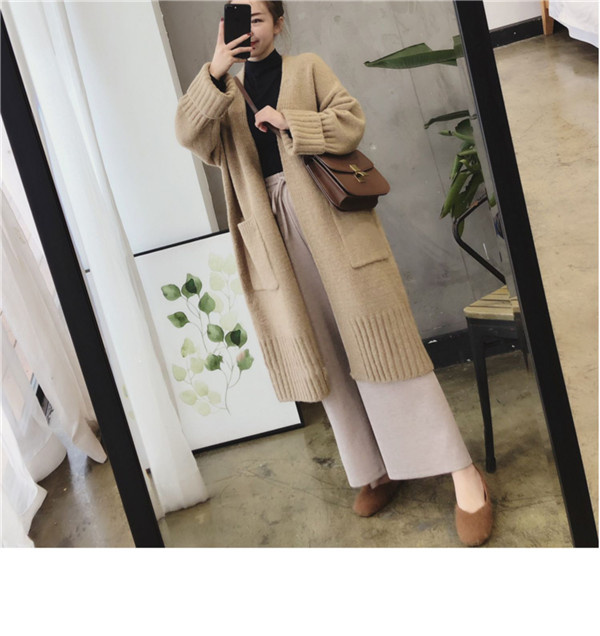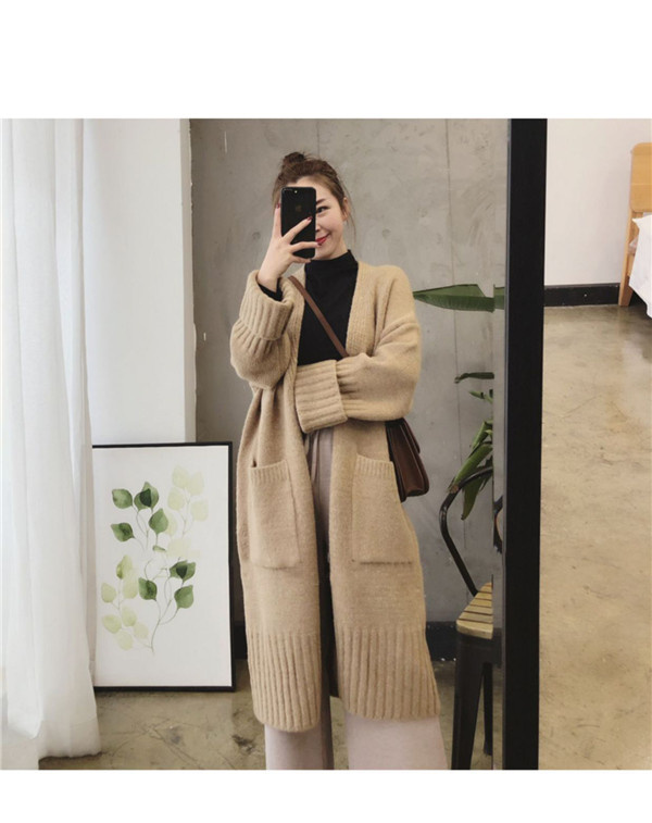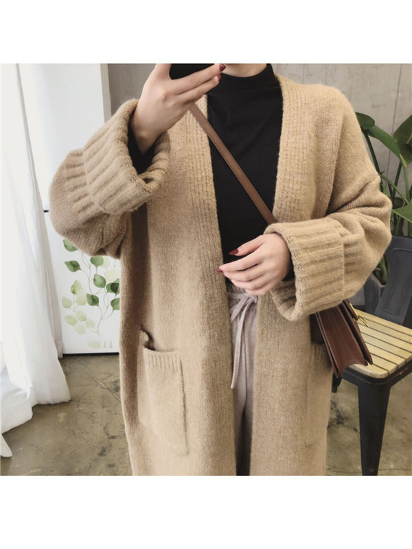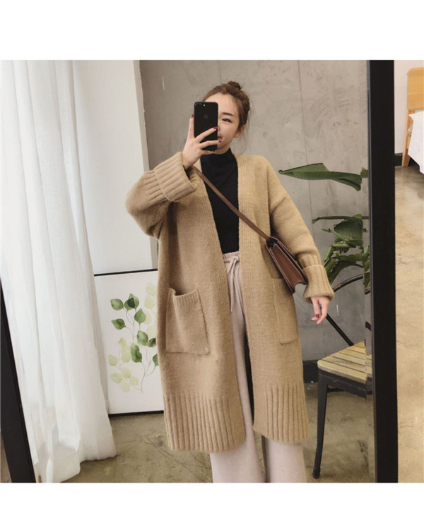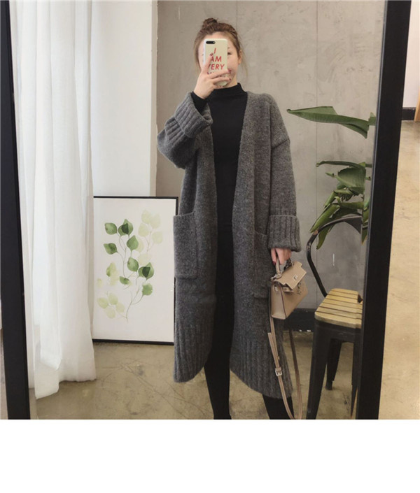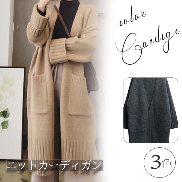 ニットカーディガン レディース トップス ロング丈 長袖 コート ポケット アウター 羽織り ニット 大きいサイズ シンプル 厚手 上品