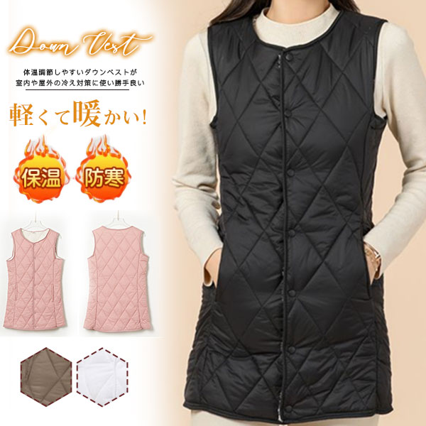 店長イチオシ ダウンベスト レディース ベスト 中綿ベスト 裏起毛 ロング アウター ノースリーブ ジレ 防寒 大きいサイズ 保温 軽量 防風 通勤 秋 冬