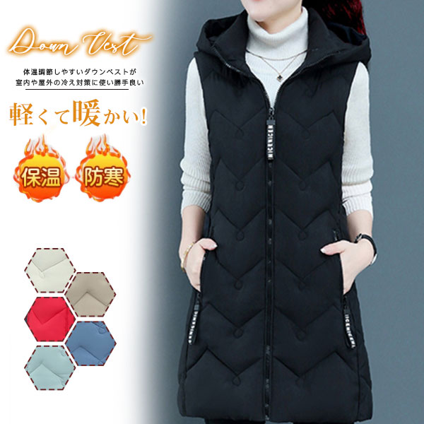 ダウンベスト レディース ベスト 中綿ベスト ロング アウター ノースリーブ ジレ 防寒 ジャケット 大きいサイズ 保温 軽量 防風 通勤 秋 冬