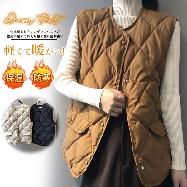 ダウンベスト レディース ベスト 中綿ベスト キルティング ノースリーブ ジレ 防寒 ジャケット アウター 大きいサイズ 保温 軽量 防風 通勤