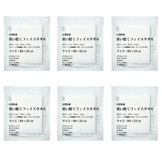 清潔快適使い捨てフェイスタオル (84×24cm) 6個セット 個包装 使い捨てタオル ウイルス対策 携帯用 災害用 非常用 アウトドア用