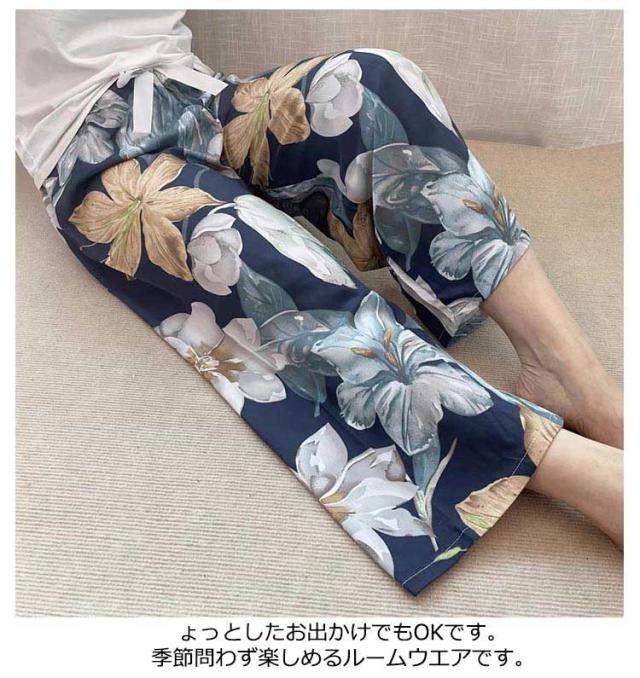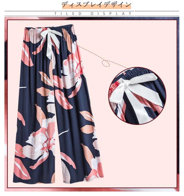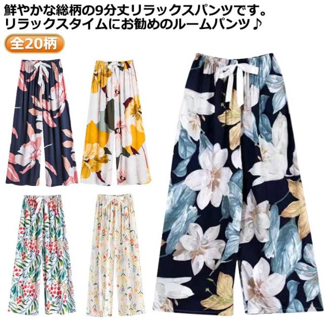 柄パンツ 全20柄 ワイドパンツ ルームパンツ レディース リラックスパンツ 9分丈 九分丈 秋 ステテコ 総柄 ロングパンツ 涼しい おしゃれ ゆったり ルームウェア とろみ 部屋着 薄手 かわいい 花柄 婦人 パジャマ 長ズボン サラテロパンツ 春 夏 夏パンツ
