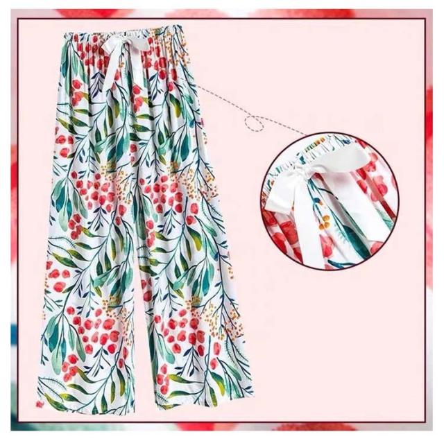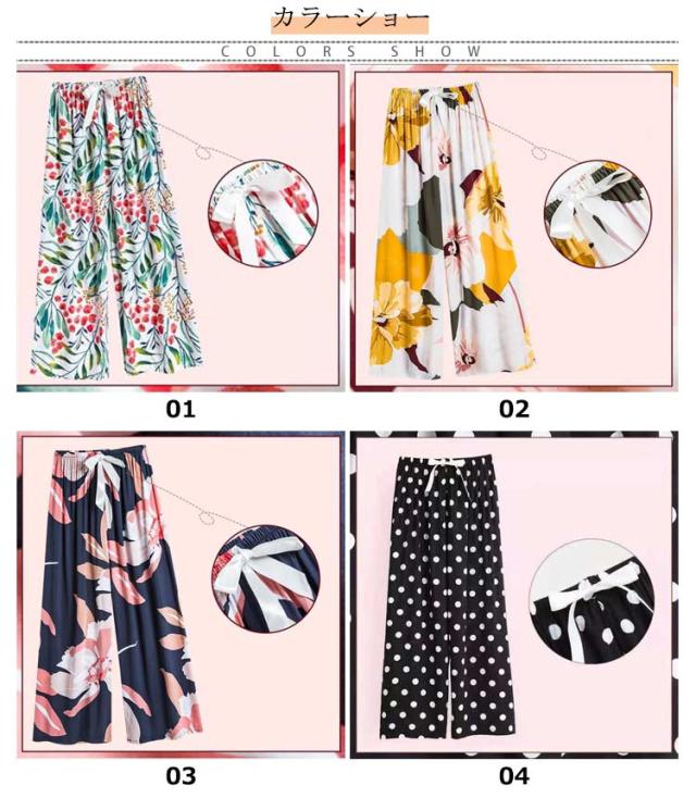 | 鮮やかな総柄の9分丈リラックスパンツです。リラックスタイムにお勧めのルームパンツ♪ 触り心地もよくノンストレスシーズンムード高まる。 総柄デザインおうちタイムもかわいくおしゃれに♪ お気に入りのパンツでリラックスタイムもかわいくおしゃれに♪ ウェストはリボンがついていて抜かりないデザイン。 部屋着としても、パジャマとしてもいいし、リゾートやちょっとしたお出かけでもOKです。季節問わず楽しめるルームウエアです。 | |