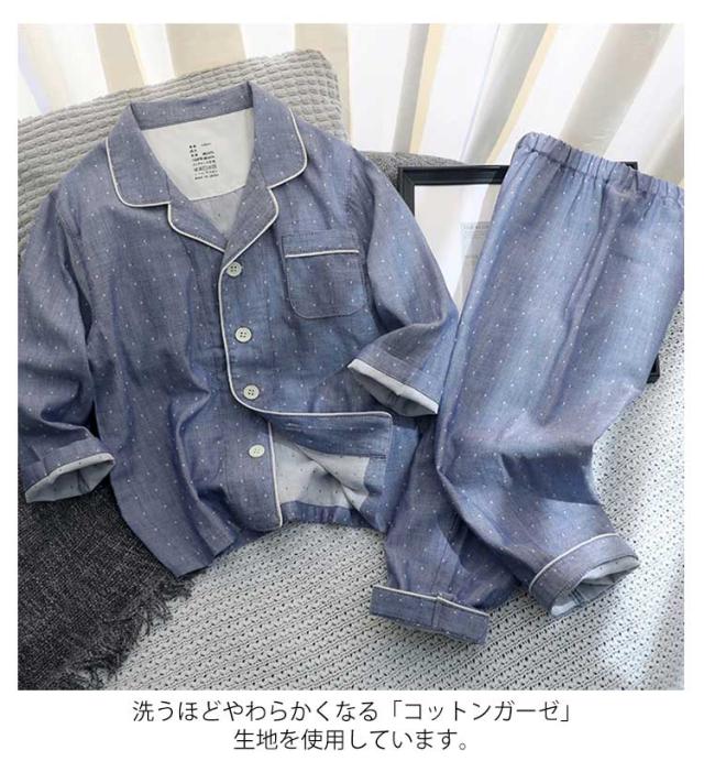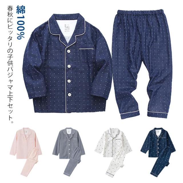 寝巻き パジャマ 綿100% 二重ガーゼ ズボン キッズ ルームウェア 女の子 子供パジャマ セットアップ 長袖 男の子 ダブルガーゼ 春 秋 可愛い チェック ドット柄 ナイトウェア ガーゼ 上下セット 部屋着 薄手