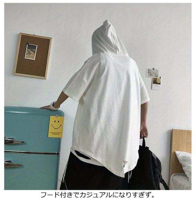 | 3colors×5size 無地デザインとビッグシルエットのハーフジップタイプの半袖パーカー どんなカジュアルな装いにもマッチ フード付きでカジュアルになりすぎず | |