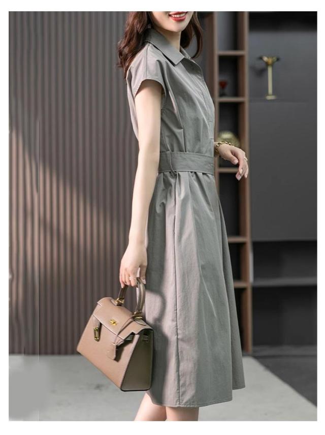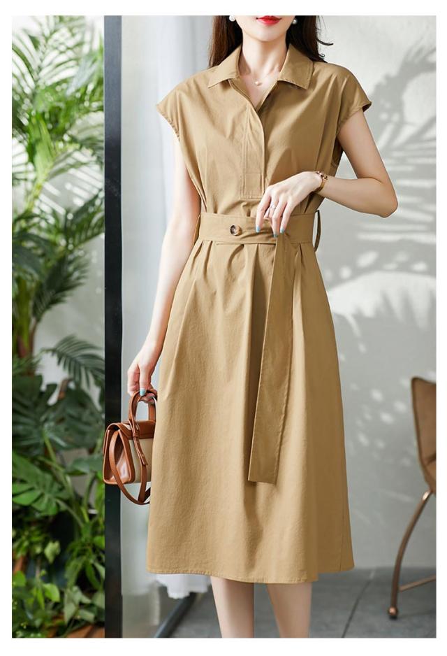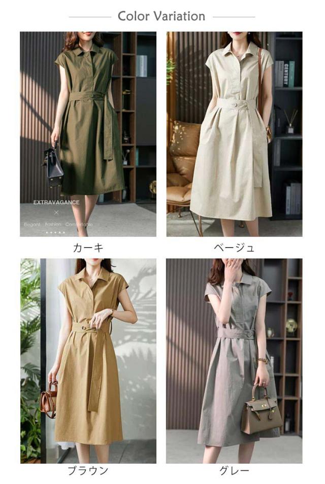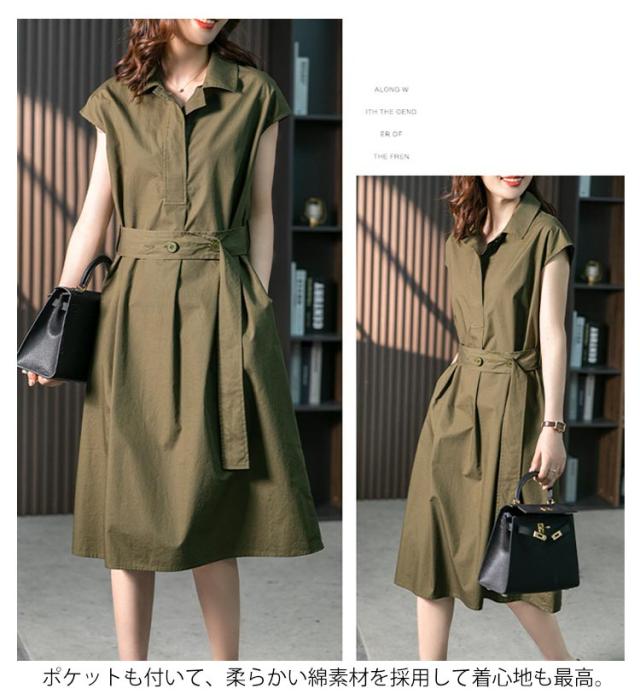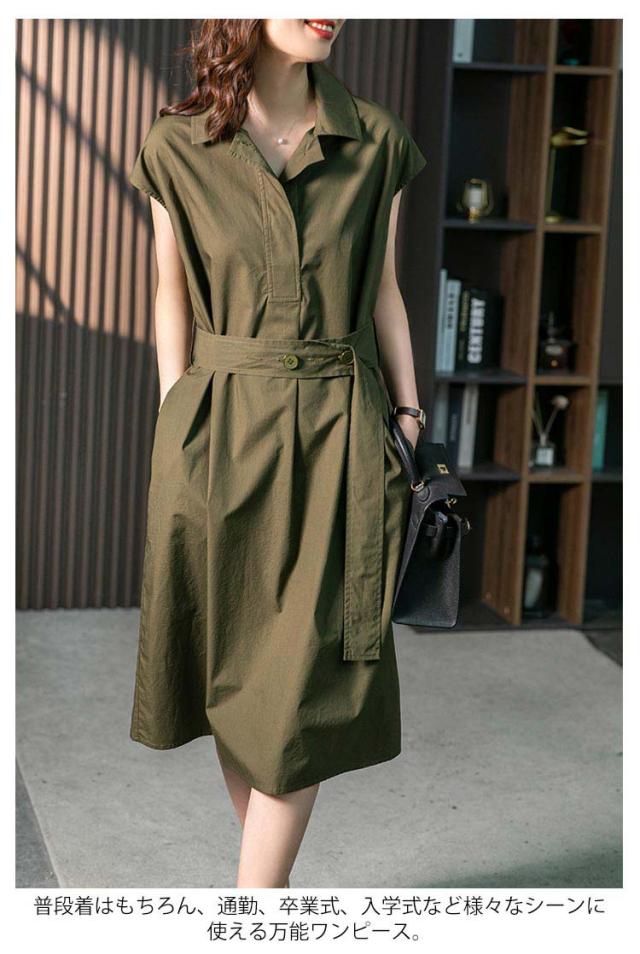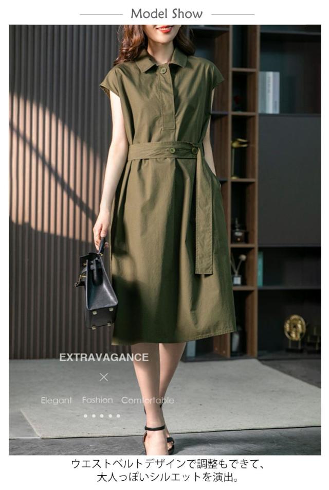 | 大人きれいなシルエットのミモレ丈ワンピース。 ウエストベルトデザインで調整もできて、大人っぽいシルエットを演出。 ふんわり広がるフレアシルエットで、ヒップや太もも周りをしっかり体型カバーします。 トップスはシャツ襟のように折り返すときちんと感のあるきれいめスタイル。 ポケットも付いて、柔らかい綿素材を採用して着心地も最高。 普段着はもちろん、通勤、卒業式、入学式など様々なシーンに使える万能ワンピース。 | |