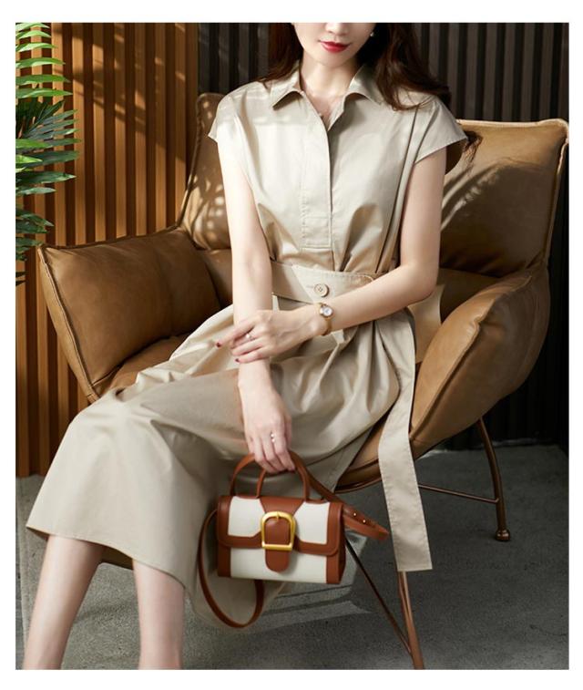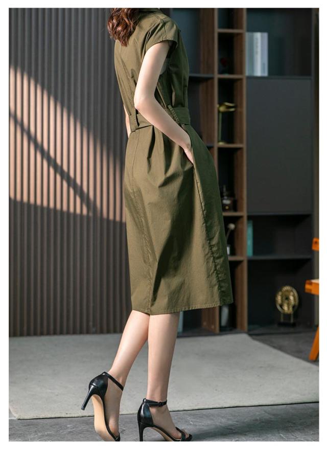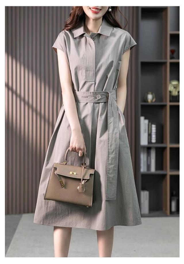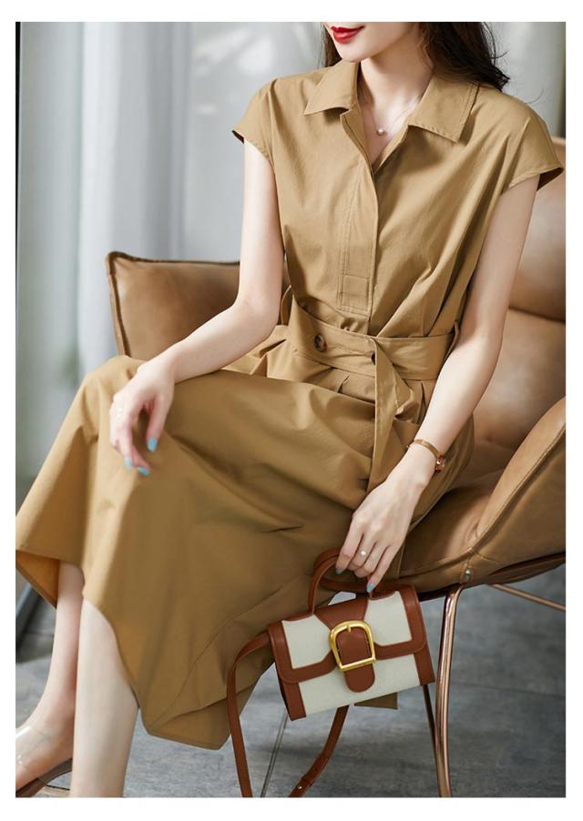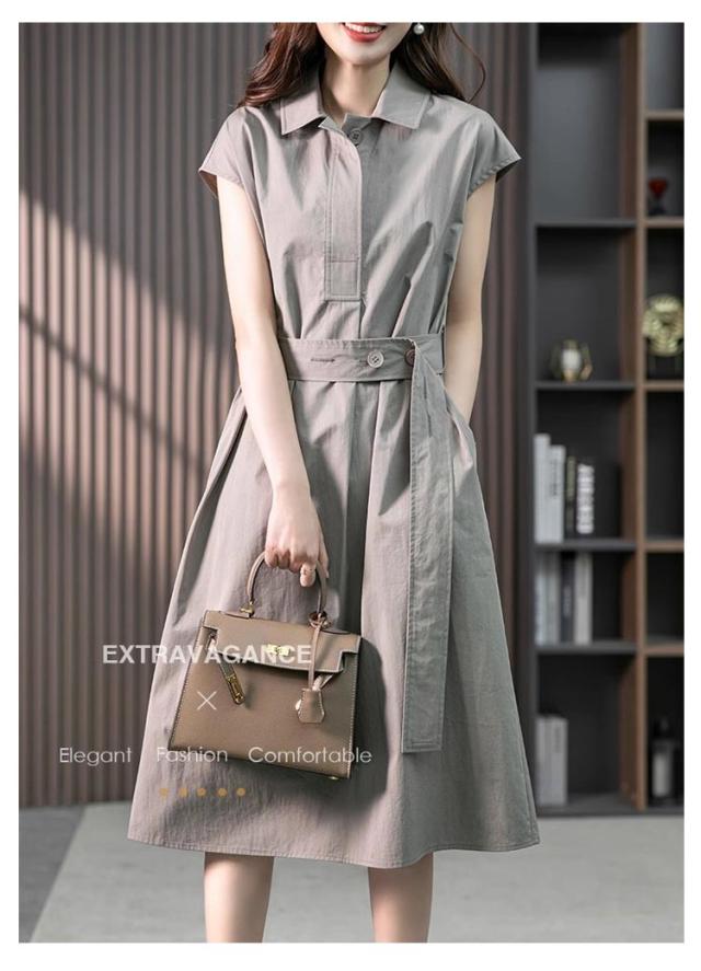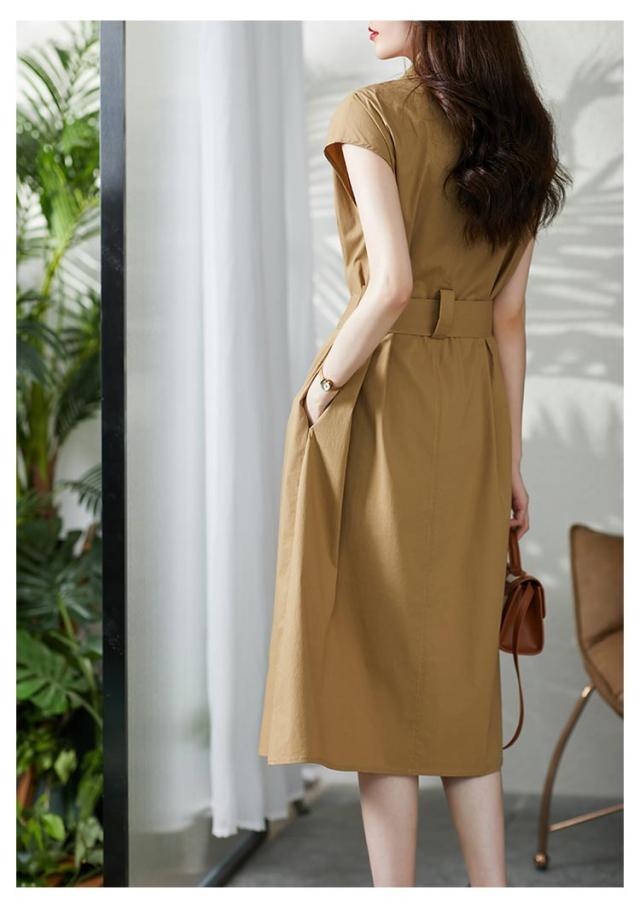 | 大人きれいなシルエットのミモレ丈ワンピース。 ウエストベルトデザインで調整もできて、大人っぽいシルエットを演出。 ふんわり広がるフレアシルエットで、ヒップや太もも周りをしっかり体型カバーします。 トップスはシャツ襟のように折り返すときちんと感のあるきれいめスタイル。 ポケットも付いて、柔らかい綿素材を採用して着心地も最高。 普段着はもちろん、通勤、卒業式、入学式など様々なシーンに使える万能ワンピース。 | |