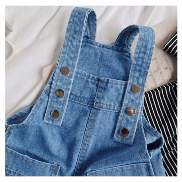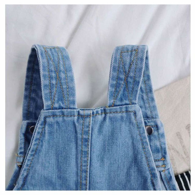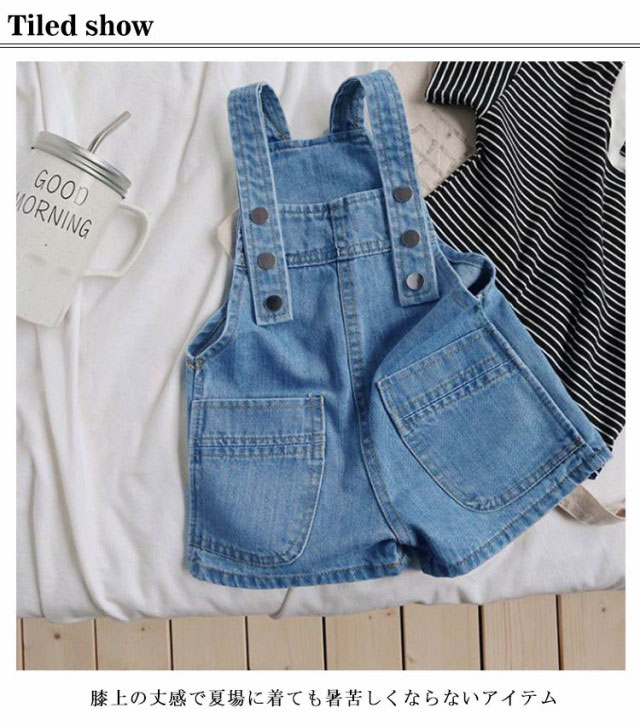 | カジュアルコーデ定番アイテムのデニムサロペットが登場。 前に2つのポケットがあります。 膝上の丈感で夏場に着ても暑苦しくならないアイテム シンプルなTシャツやブラウスなどと合わせるときれいに着られます。 柔らかな素材感がキッズベビーに最適! | |